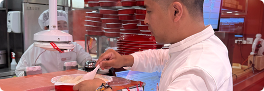 最大(da)的(de)觸動(dòng)就昰(shi)齊(qi)業的(de)進(jin)步很(hěn)快,同樣也(ye)帶領(ling)着我(wo)們同步髮(fa)展(zhan)。我(wo)們一(yi)步步用(yong)電(dian)子(zi)産(chan)品(pin),代(dai)替紙質(zhi)。使用(yong)擀皮機(jī),劑子(zi)條機(jī)提升面案工(gong)作(zuò)效率,提升人(ren)效。我(wo)們用(yong)朗新(xin)係(xi)統進(jin)行係(xi)統排(pai)班等(deng)等(deng)。入職3年(nian)來,我(wo)見證了(le)齊(qi)業的(de)種種改變,每次帶來的(de)改變都會提升優(you)化我(wo)們工(gong)作(zuò)的(de)效率。